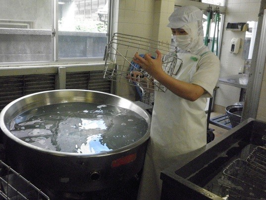 ★給食室では、今日は食器や籠、調理器具などを時間をかけて念入りに磨き上げ、給食開始に向けて準備万端です。危険な暑さが続いていますが、子供たちが毎日元気に過ごせるよう、衛生面に注意を払いながら、安心安全の学校給食に努めてまいります。