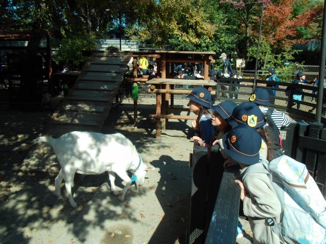 今日も気持ちのよい天気となりました。「生き物をよく観察しよう」「約束を守ろう」という2つのめあてを立てて、1年生が校外学習に出かけました。色づいた木々やひらひらと舞う葉が、秋の深まりを感じさせてくれます。児童は歓声を上げながら動物の動きや表情を楽しんでいました。1年生のみんなで食べるお弁当も今日が初めてです。楽しくおいしくいただきました。