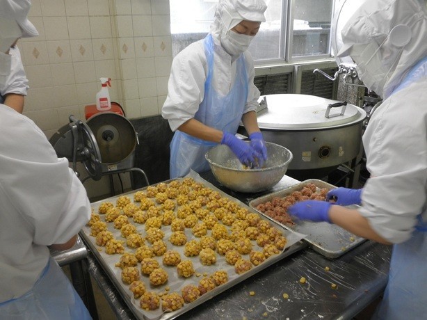 【きゅうしょくつうしん】昨日11月3日は「文化の日」でしたね。「自由と平和を愛し、文化をすすめる日」ということで、皇居では文化勲章の授与式が行われました。今日は「文化の日」にちなんで菊花蒸しの献立です。11月は菊の季節。菊祭りが行われているところもあります。わかめご飯には、菊の花びらを入れました。菊花蒸しは、とうもろこしを菊の花に見立ててつくりました。菊の季節を味わいましょう。