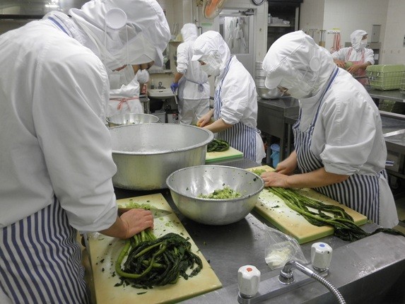【きゅうしょくつうしん】野沢菜は長野県の野沢地方で多くつくられている野菜です。茎が太く、大きいものでは1mくらいの高さまで育ちます。収穫した野沢菜を保存して長く食べられるようにと考えてつくられたのが野沢菜漬けです。ふゆ、雪深い野沢地方にとっては、大切な野菜の保存食でした。今日は細かく切って炒飯にしました。よくかんで味わって食べましょう。