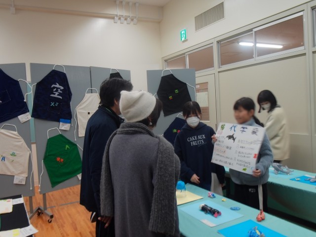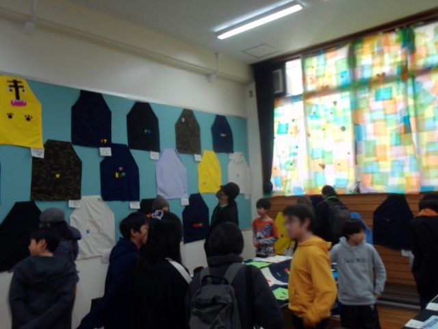 多くの保護者・地域の方に子供たちの学習の様子を見ていただきました。また、展覧会が11日から開催されており、メイン会場の多目的室と教室前廊下は、アートな空間になりました。一点一点の作品をじっくり、楽しそうに見てくださる方が多くいらっしゃいました。6年生によるギャラリートーク(展示作品の説明)も好評でした。