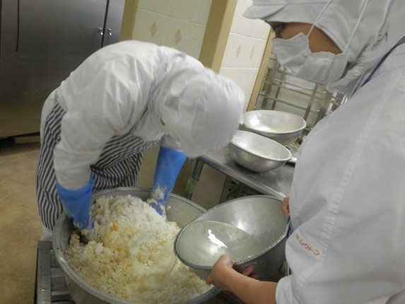 【きゅうしょくつうしん】今日の「みたらし宝玉」は、6年生の作品「龍図」にちなんで給食委員会の担当のみなさんが考えたデザートです。「みたらし宝玉」は、大きな白玉団子です。大きいので一口では食べず、スプーンや箸で3~4個に小さく分けて、よくかんで食べましょう。