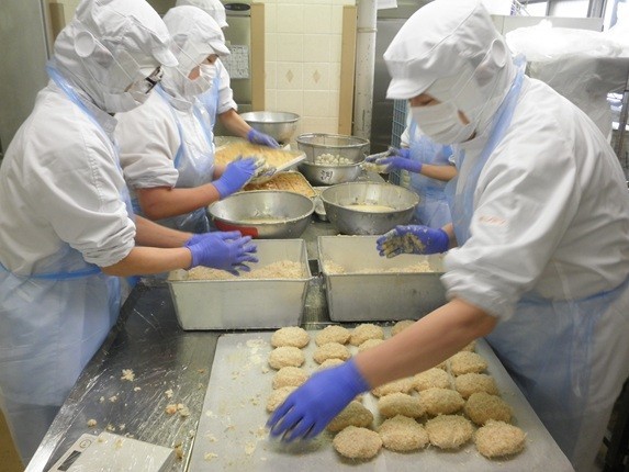 ★昨秋、インフルエンザなどで欠席が多かった時期、「おみくじコロッケで健康運バッチリだからずっと風邪をひいていないよ」と話してくれる児童がいました。おみくじコロッケの効力は絶大です。今年も、教室では「ウィンナーだった!」「おかわりの卵を半分こしたら、運はどうなるかな」と、楽しんで味わう様子を見ることができました。コロッケを成型するときには、3つの「運」がほぼ均等になるようにしました。