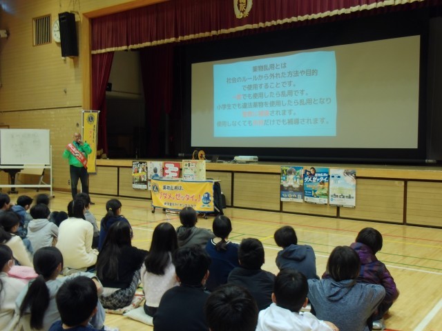 1時間目、6年生を対象とした薬物乱用防止教室を行いました。講師の東京蒼天ライオンズクラブ 丸井一弘さんに、薬物乱用の危険が身の回りに潜んでいること、たくさんの誘惑があること、手を出しては「ダメ!ゼッタイ!」ということを、力強く分かりやすく教えていただきました。