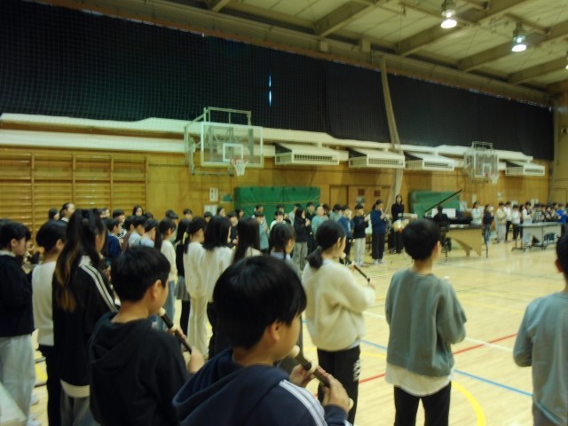 幡代学級、4年生、5年生は音楽発表会です。太鼓の力強いリズムや、様々な音が重なり合う合奏、一人一人の声が広がる合唱など、たくさんの曲が披露されました。保護者の方からの大きな拍手を受けた子供たちの笑顔が、とても輝いていました。