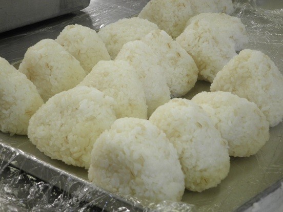 ★塩にぎりは、大きさを3段階に分けて、重さを確認しながらつくりました。おにぎりを見て「大きい!」という声が上がっていましたが、どの学級もほぼ完食でした。寒波到来で、給食室は朝6時の時点で気温12℃。お昼近くになっても気温は上がらず、今日も厳しい寒さの中での作業になりましたが、つくり手の1つ1つのおにぎりに込める心は、当時も今も変わらないと思います。