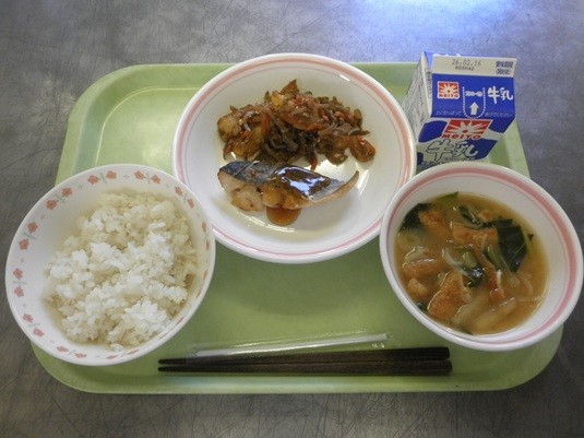 【献立】ご飯、牛乳、さわらの照り焼き、じゃが芋のきんぴら、みそ汁