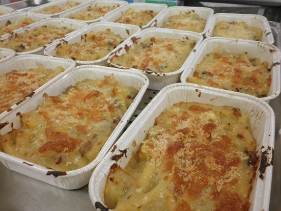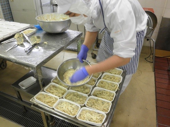 【きゅうしょくつうしん】今日の「ハイ!チーズ!カレー」は、6年4組が考えたオリジナルカレーです。外国語の学習で栄養のことも考えながら、各班でオリジナルカレーをつくって発表し、その代表になったのが今日の「ハイ!チーズ!カレー」です。さつま芋やフルーツが入ったやさしいカレー風味のグラタンです。紙カップは後片付けの時にきれいに重ねましょう。お昼の放送では、今日のオリジナルカレーについて英語で発表されます。よく味わって食べましょう。