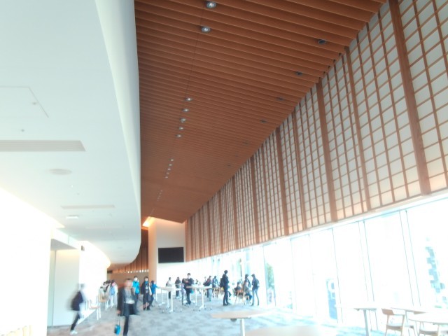 ガイドさんの解説を聞きながら、VIPエリア、ロッカールーム、ビップ席などを案内してもらいました。ラウンジは、日本らしい「和の空間」をコンセプトに、高品質な国産木材がふんだんに使用されていました。