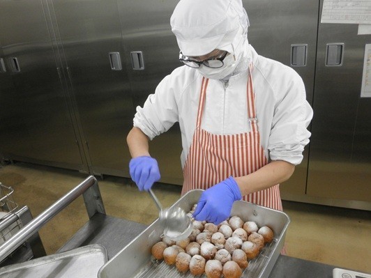【きゅうしょくつうしん】今日の「にんじん揚げドーナツ」は、食品ロスをテーマに学習している5年3組の担当グループのみなさんが考えた「苦手食材克服料理」です。もともとは「にんじんスコーン」の予定でしたが、都合により「揚げドーナツ」になりました。お昼の放送で5年3組のみなさんから話があります。よく聞いてくださいね。「揚げドーナツ」は固めです。でも、かめばかむほどおいしさがわかると思います。よくかんで食べましょう。