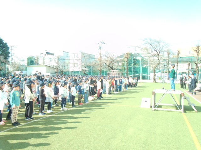 桜の花が一気に開きそうな暖かな朝。一年間の締めくくりとなる修了式を行いました。