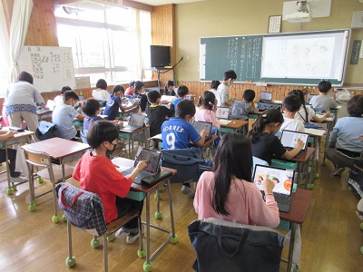 【校長日記】5月12日(木)一斉下校 公開日 2022/05/12 更新日 2022/05/12 校長室より 一斉下校訓練を行いました。大雨が近づいてきている想定で、コースごとに一斉に下校しました。教員も引率したりポイントに立ったりしました。あと3年3組の国語。学習者用デジタル教科書を使っていました。