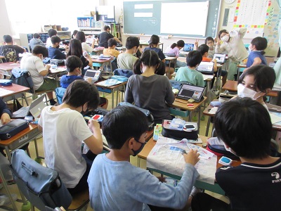 【校長日記】6月9日(木)天日干し 公開日 2022/06/09 更新日 2022/06/09 校長室より プール清掃が終わり、天日で干しています。もうすぐ水泳が始まります。タブレットを活用した授業を2つ。6年2組の英語と5年3組の家庭科。返し縫いの映像を見ながら、実技ができます。便利になりました。
