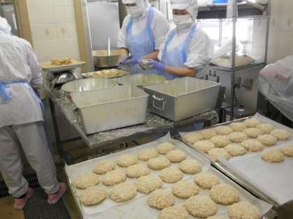 【きゅうしょくつうしん】今日の「丸ごとキャベツのメンチカツ」の「丸ごと」とは何でしょうか?これは、キャベツを「丸ごと使っている」という意味です。いつもは固くて使わず捨ててしまうキャベツの芯の部分も細かく切って、メンチカツにしました。キャベツは1年中食べることができますが、今収穫されているものは「春キャベツ」といって、やわらかい食感が特徴です。キャベツのサクサクとした食感と甘さを味わいながら食べましょう。