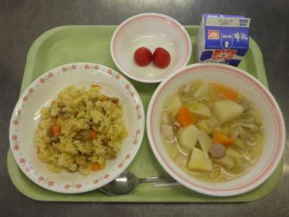 【献立】カレーピラフ、牛乳、ポトフ、いちご