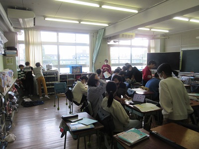 【校長日記】11月7日(火)昼休み 公開日 2023/11/07 更新日 2023/11/07 校長室より 雨も上がり、昼休みに校庭を大勢の子が走り回っていました。教室は昼休みの6年1組です。男女それぞれかたまり、何やらやっていました。5校時の体育館練習は1年生。頑張っていました。発表会が楽しみです。