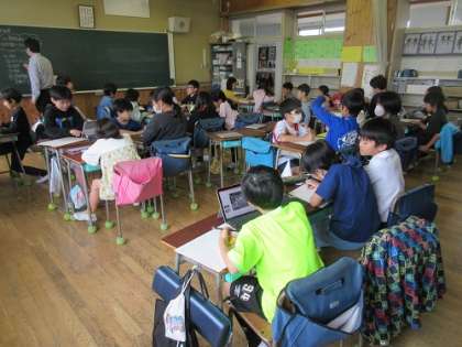 6年生が国語の学習で幡代小のよいところを取材しています。つながる菜園の方にもインタビューしました。今日は5学級(2〜6校時)で授業を参観しました。写真は4年2組の社会と3年1組の国語です。