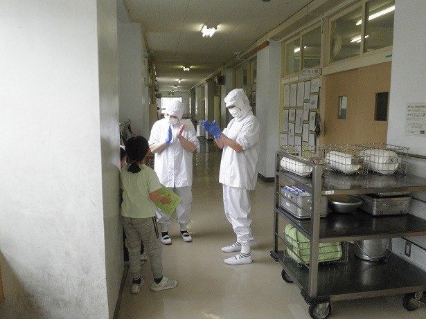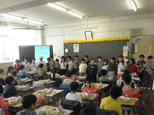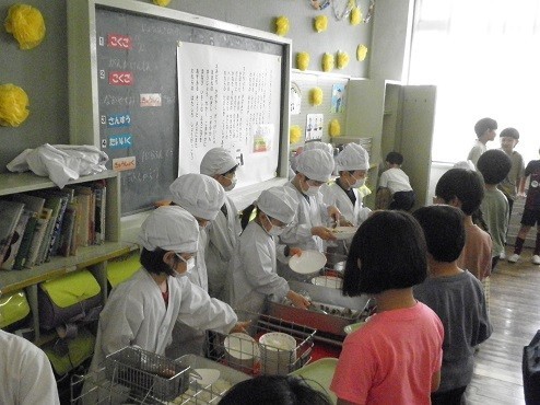 ★1年生の給食準備中、2年生の子供たちが、配膳したり運んだりするお世話をしてくれていました。「きゅうしょく大さくせん」という生活科の学習です。「きゅうしょくつうしん」の読み聞かせ担当の子供たちは廊下で何度も練習し、今日は給食スタッフにも聞いてもらっていました。上手に読んで大拍手です。「きゅうしょく大さくせん」は、今日が最終日でした。1年生の「ありがとうございました」の声を受ける2年生の子供たちの、誇らしげな表情が素敵でした。
