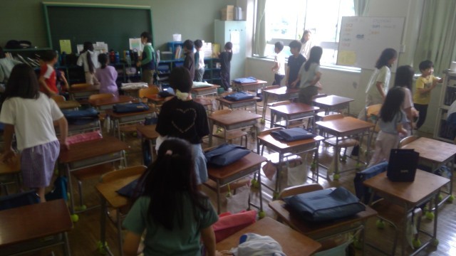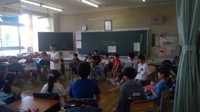 今年度、初めてのたてわり班活動です。1年生から6年生までがグループとなって交流を行いました。リーダーの6年生は、クイズ、爆弾ゲーム、宝探し、フルーツバスケットなどの企画を考え、安全に全員が楽しめるよう上手に進行をしていました。各教室からは、たくさんの笑い声が聞こえてきました。