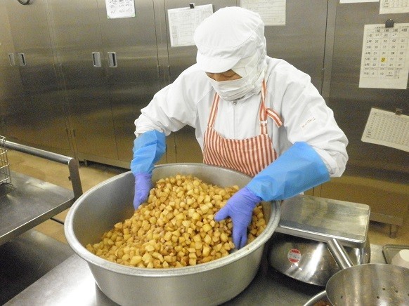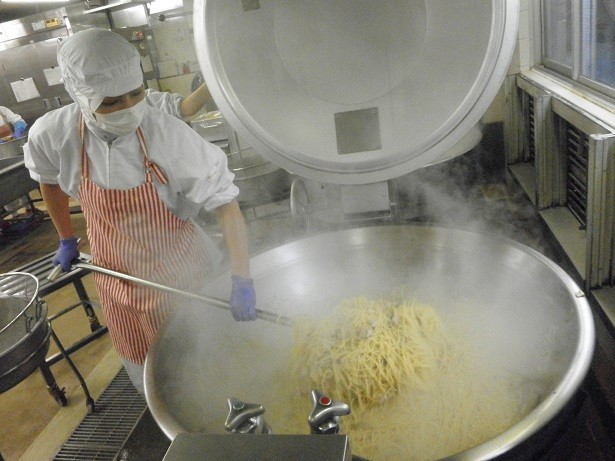 ★和風スパゲティの味付けはバターと醤油です。トッピングした海苔の香りも加わり、子供たちはよく食べていました。スパイシーポテトビーンズも「じゃがいもが甘い!」、「豆がかたくておいしい!」と味わって食べる様子が見られました。