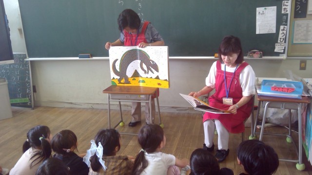 今週から始まった読書旬間に合わせて、今年も、「本の森」の皆様に、低学年、幡代学級で読み聞かせをしていただきました。笑ったり驚いたりと子どもたちは、お話の世界に入り込んでいました。