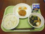 【献立】ご飯、牛乳、ぶりの照り焼き、小松菜のあえもの、いなか汁 【きゅうしょくつ...