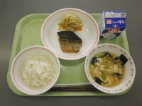 【献立】ご飯、牛乳、さばのみそ煮、菊花あえ、かきたま汁【きゅうしょくつうしん】今...