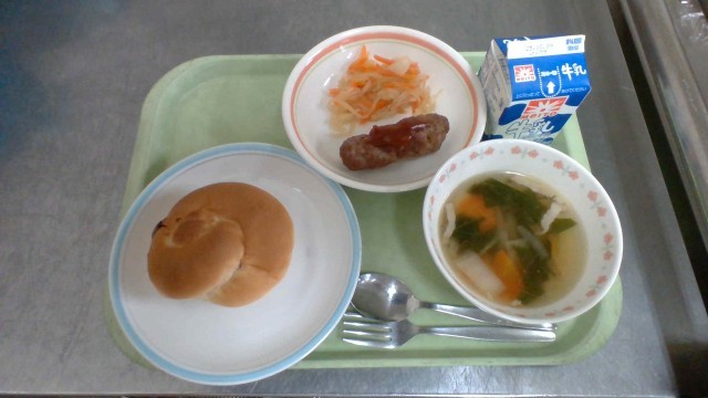 世界の料理・ドイツ パン 手作りソーセージ ザワークラフト風サラダ 牛乳