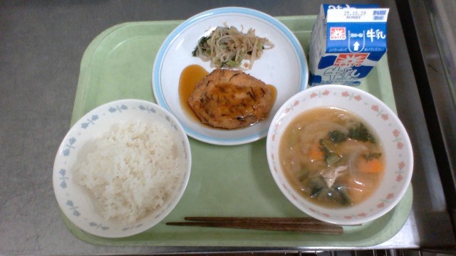 ごはん 真砂揚げ おかかあえ 鶏肉入りみそしる 牛乳