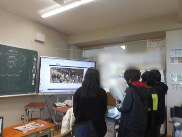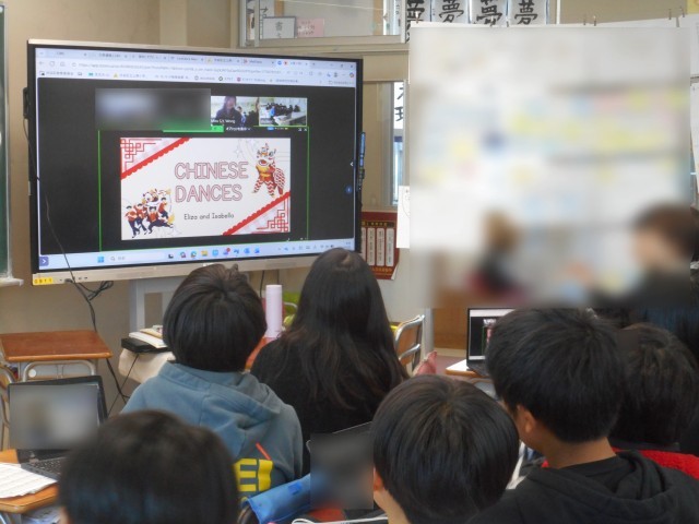 第6学年の外国語「My Best Memory」の単元で自分たちの思い出を香港の現地校に発表しました。発表前は、とても緊張している子供たちでしたが、交流が始まるとお互いの発表を見聞きし、うなずいたり、「すごい!」とリアクションをしたりしながら楽しそうに交流する姿が見られました。交流前に何度も練習した成果が出ていました。