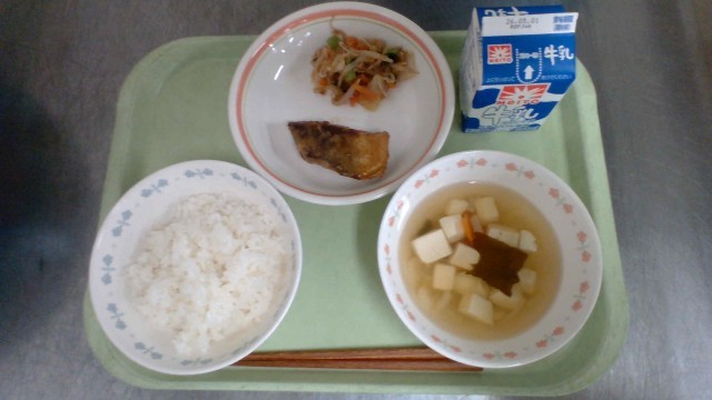 ごはん さばのみそ煮 豆腐とわかめのすましじる おろしあえ 牛乳