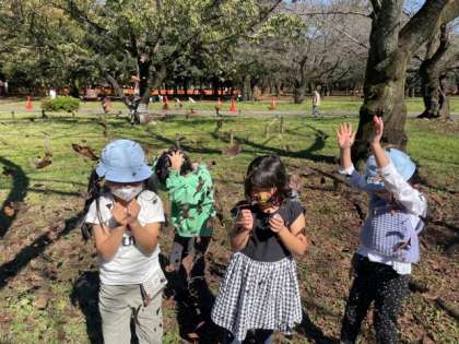 公園では、秋さがしビンゴをしたり、たくさんのドングリ拾いをしたり、走り回ったりして楽しみました。