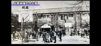 今日の全校朝会では、開校当時の校舎や校庭の様子をお話しました。この写真を見せました。開校当時、この上原の地にはウサギが跳ね、キジが飛ぶ、そんな光景だったそうです。100年前と今とを比べると、どんな変化があったのでしょうか…。