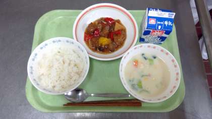 5月31日の給食 渋谷ワンダフル給食 黒酢は、家庭でつかっている 酢とちがい色は黒く、すっぱさがまろやかな酢です。今回の黒酢酢豚は、日本の玄米でつくったうまみ成分がとてもおおい黒酢をつかっています。ぶたにくをやわらかくジューシーにあげて、黒酢のあんをからめた酢豚はとってもおいしいです。服部学園 白木先生より
