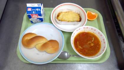 パン アッシパルマンティエ ミネストローネ 果物 牛乳