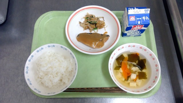 ごはん さばのみそに とうふとわかめのすましじる おろしあえ 牛乳