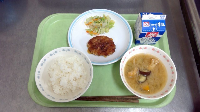 ごはん コロッケ なすと油揚げのみそしる じゃこ入り即席漬け 牛乳