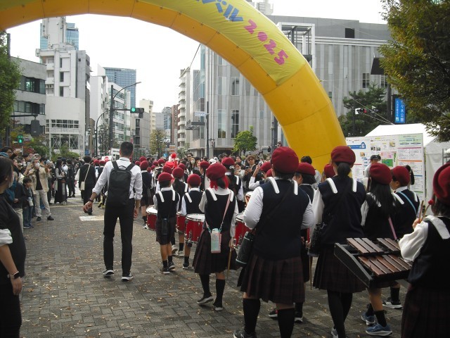 パレードが進むにつれて児童の集中力が高まっていくのが分かりました。また渋谷の街中では演奏がビルに反響することで、より迫力のある音楽になっていました。児童は立派な姿で最後までやり遂げ、今までで最高の演奏になりました。