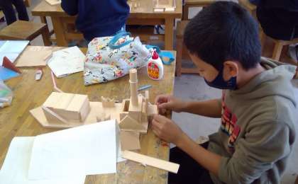 4年生の時に習った電動糸のこぎりの使い方は完璧!イメージに合うように、小さなパーツも自分で切ってきます。