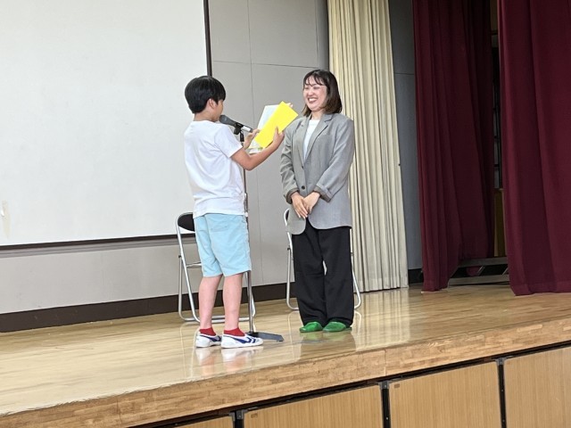 5月9日金曜日に、離任式を行いました。4人の去られた方に向けてお手紙を書き、代表者が読み上げました。参加できなかった2名の方の分は、代わりに校長先生に受け取ってもらいました。去られた先生に心をこめた手紙を児童が読むと、先生は感極まって涙があふれそうになり、まっすぐ児童を見られないという場面もありました。直接お世話になった先生方にお礼の気持ちを伝えられる、よい機会になりました。