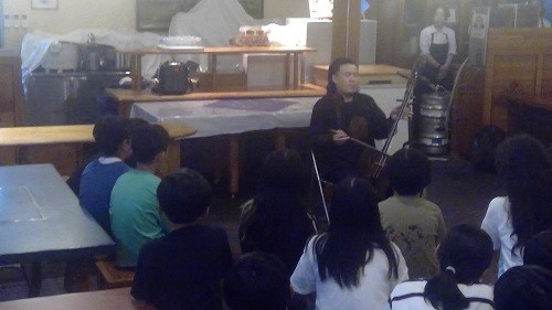 入浴後、待ちに待ったバーベキューの夕食です。子供たちはグループごとにお肉や野菜を焼いたり、焼きそばを作ったりしましたが、とても手際が良く驚きました。どのグループも食材を残さずに食べきりました。夕食後には、プロの馬頭琴奏者の方のコンサートがあり、モンゴルの素敵な演奏や歌に、どの子も聴き惚れていました。コンサート後は星空観察です。宿舎の方の心遣いで、施設の照明を全て消していただきました。北極星や夏の大三角等について、理科の専門の先生からレクチャーがあり、子供たちは素敵な時間を過ごしました。子供たちはどの子も元気に過ごしています。明日が最終日です。安全に気を付けて最終日を過ごします。