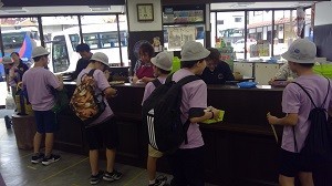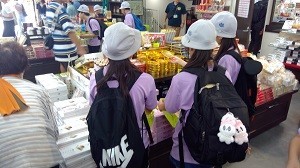 昼食も食べ終え、子供たちお待ちかねのお土産購入の時間です。値段の計算をしながら、一生懸命選んで買い物をしています。予定通りに日光を出発できそうです。到着時間について変更がある場合はH&Sにて連絡します。