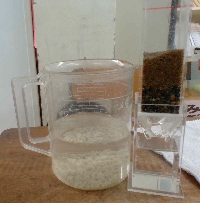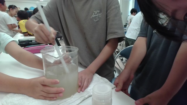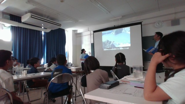 9月17日(水)の1~4時間目に水道キャラバンを行いました。社会科で学習した水源地や浄水場、水道管のことを詳しく聞くことができました。また、浄水場で水の汚れを沈殿させる沈殿池の働きを、薬品を使って実際に実験をしました。ビーカーの中で汚れが沈殿していく様子を目を大きくして覗き込んでいました。