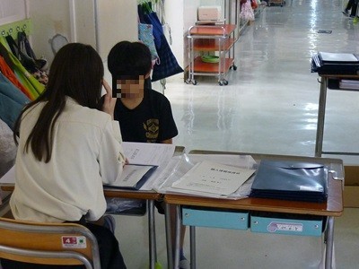 各クラスでは、写真のように一人一人に通知表を各担任から渡していました。担任からは前期で頑張ったことや、後期に向けてより取り組んでほしいこと等を、より具体的に話をしていた様子が印象的でした。子供たちも真剣に聞いており、後期に向けて意欲が増したと思います。ご家庭でも、お子さんへの後押しをお願いいたします。