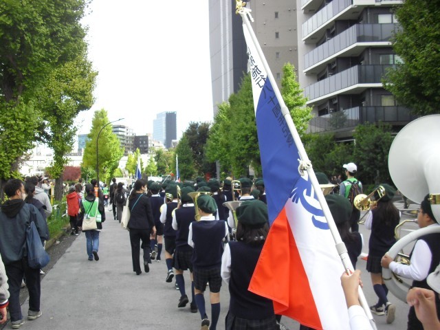 本日、6年生は代々木公園周辺、六号通り商店街、西原商店街にて、鼓笛のパレードを行いました。