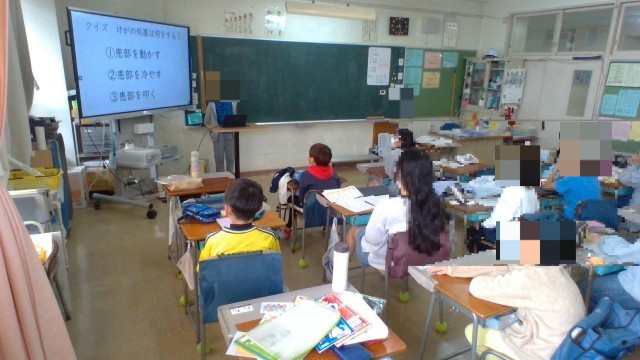 自分たちで企画して「けが」についてまとめたパワーポイントを発表しました。