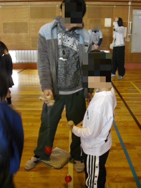 高学年が低学年に教え、異学年と一緒に剣玉をする姿がよく見られました。