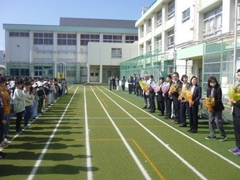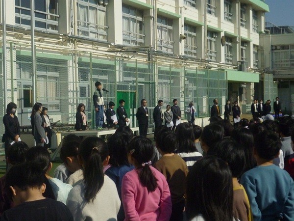 その後、続けて離任式を行いました。3月で退職される方、異動される方の紹介をし、それぞれの方にお話をいただきました。先生方の話を思い出に浸りながらしみじみと聞いている子供たちの様子が印象的でした。PTAの方から花束を贈呈していただき、全校児童の拍手で離任される先生方を送りました。新しい場所でも健康に気を付けて過ごしていただきたいです。