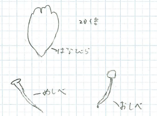 ピンセットで分解したり、顕微鏡で見たり、桜の花と比べたりするなど、工夫できました。