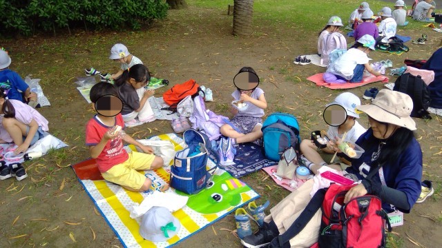 初めての小学校での遠足に、子供たちは朝から元気いっぱいでした。大型バスに乗ってお友達と楽しくおしゃべりをしながら過ごしました。